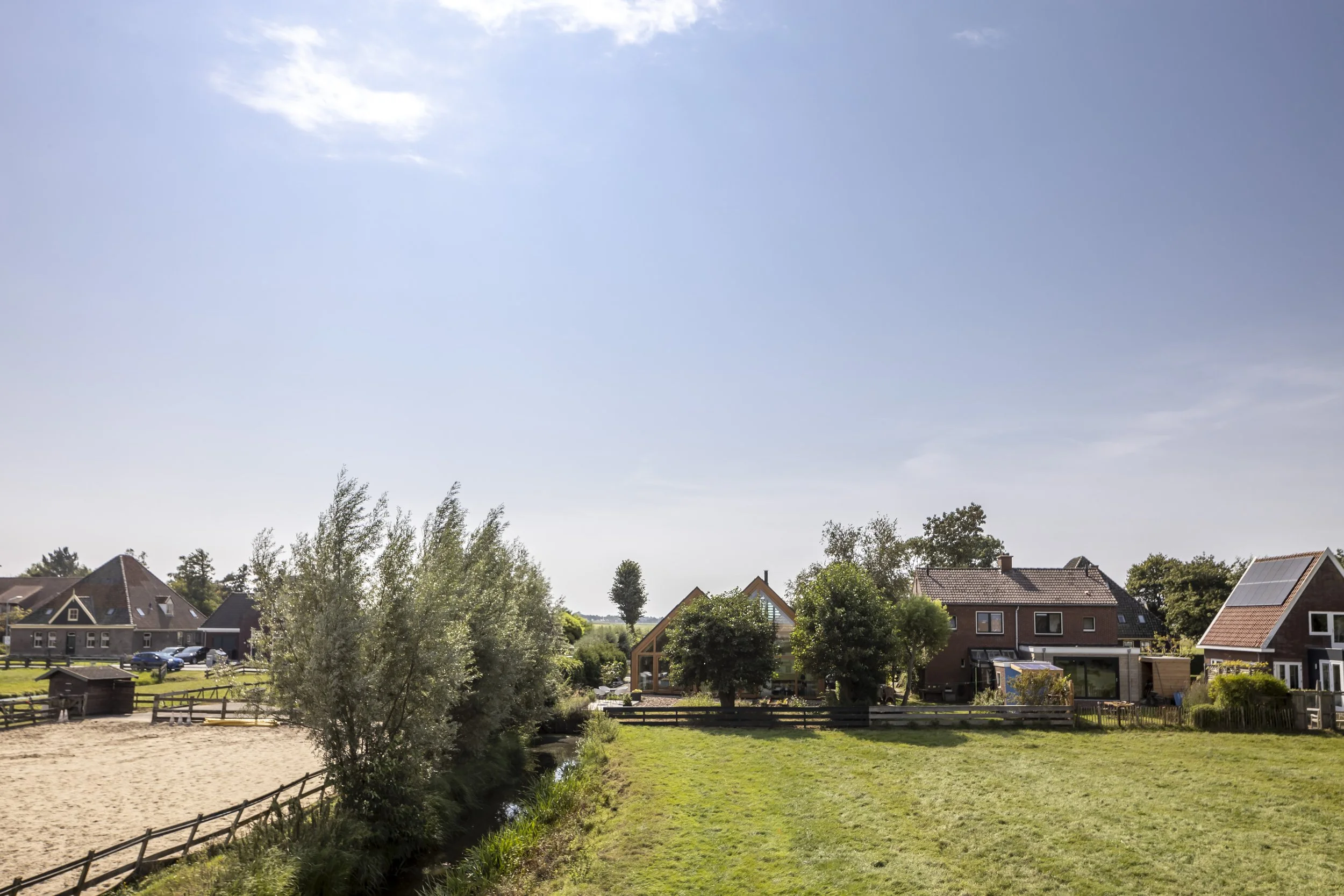 Twee woningen in één! Niet echt natuurlijk, maar er zijn 2 volumes in elkaar geschoven. De woning oogt vanaf de straat qua formaat bescheiden en past daardoor goed in de Noordhollandse lintbebouwing van het dorp. De volumes hebben de vorm van een schuur. De gesloten voorgevel met alleen de voordeur en de dubbele schuurdeur zichtbaar, benadrukt deze typologie. De oplettende voorbijganger ziet dat er meer opening in de gevel zijn gemaakt, welke beschut liggen achter de houten lamellen gevel. De lamellen laten een horizontale lijn in de gevel zien, gelijk aan de horizontale lijnen in een traditioneel metselwerk gevel.