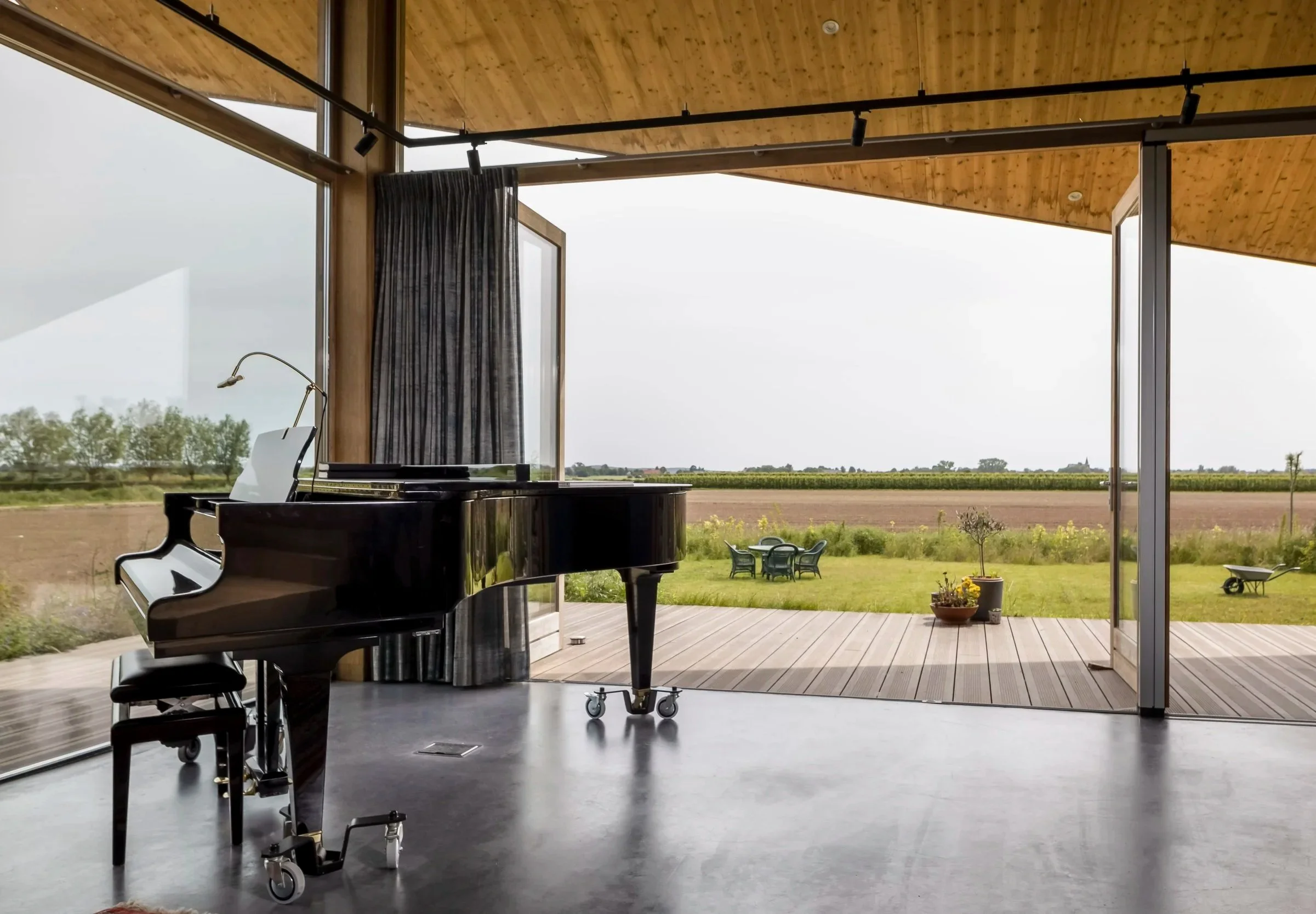 Qua akoestiek is de woning ideaal voor de concerten die de bewoners graag geven. Al vlak na de verhuizing was het eerste concert een feit.
