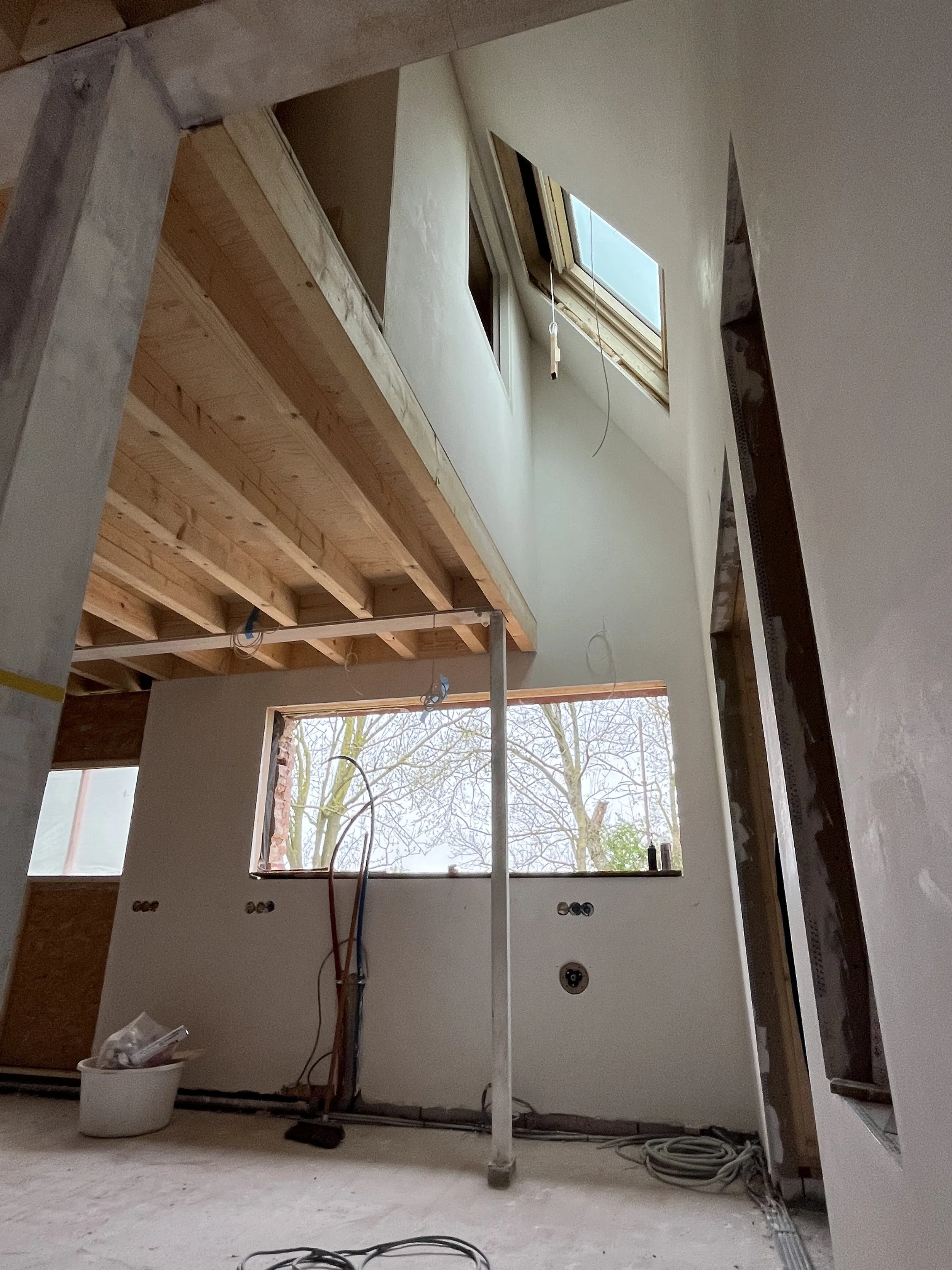 de hoogte van de kap gebruiken zodat op de begane grond ruimte over blijft
